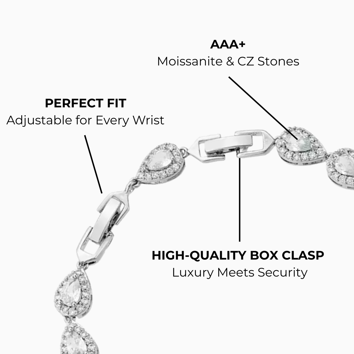 Chez Lumorjewelry, nous nous engageons à créer des bracelets d'une pureté irréprochable et d'une qualité exceptionnelle. Chaque pièce est méticuleusement confectionnée avec des moissanites et des oxydes de zirconium de grade AAA+ , conformément à nos normes d'excellence rigoureuses. Nos bracelets sont réglables pour un ajustement parfait et dotés de fermoirs haut de gamme et sécurisés, témoignant de l'engagement de Lumor pour la précision et le savoir-faire.
